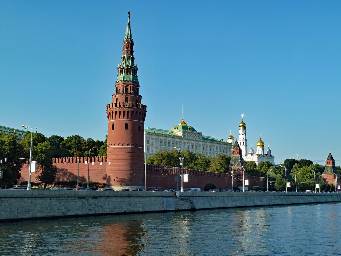 Der Kreml mit dem Regierungspalast von der Moskwa aus