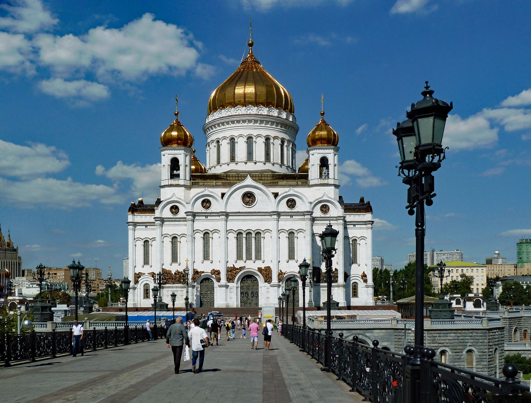 Igor scheint richtig verliebt zu sein in diesen Friedhof und will gar nicht davon weg. Wir hätten lieber etwas weniger Zeit auf diesem traurigen Gelände verbracht und dafür mehr in der Christ-Erlöser-Kathedrale, die wir anschließend besuchen. Dieser monumentale Bau wurde nach vielen Zerstörungen 1995 wieder aufgebaut und bereits nach 5 1/2 Jahren Bauzeit fertig gestellt. Die Kirche gilt als das größte russisch-orthodoxe Kirchenbauwerk der Welt, bietet in dem mächtigen Innenraum mit der 80m hohen Kuppel und den fantastisch bemalten Innenwänden Platz für 10 000 Gläubige. Wir sind sehr angetan von den Fresken und Malereien und werden darauf hingewiesen, dass hier im Februar 2012 die russische Mädchen-Punkband Pussy Riot das berühmte Happening mit Gebeten und Gesängen gegen Putin veranstaltete, was zur Verhaftung und zur dreijährigen Haftstrafe wegen "Rowdytums aus religiösem Hass" führte.