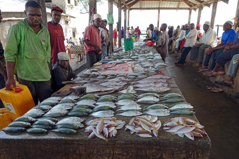In Mkokotoni halten wir auf dem Fischmarkt. Hier einige Fotos davon: