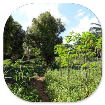 Inzwischen fängt es an zu regnen und Ismail flitzt zurück zum Minibus, um ein paar Schirme zu holen. Aber vor uns liegt die Community Kizimbani, das ist die Dorfgemeinschaft der Gewürzfarm.