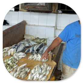 Die Händler haben ihre eigenen Stände und bieten dort die von den Fischern ersteigerten Fische an.