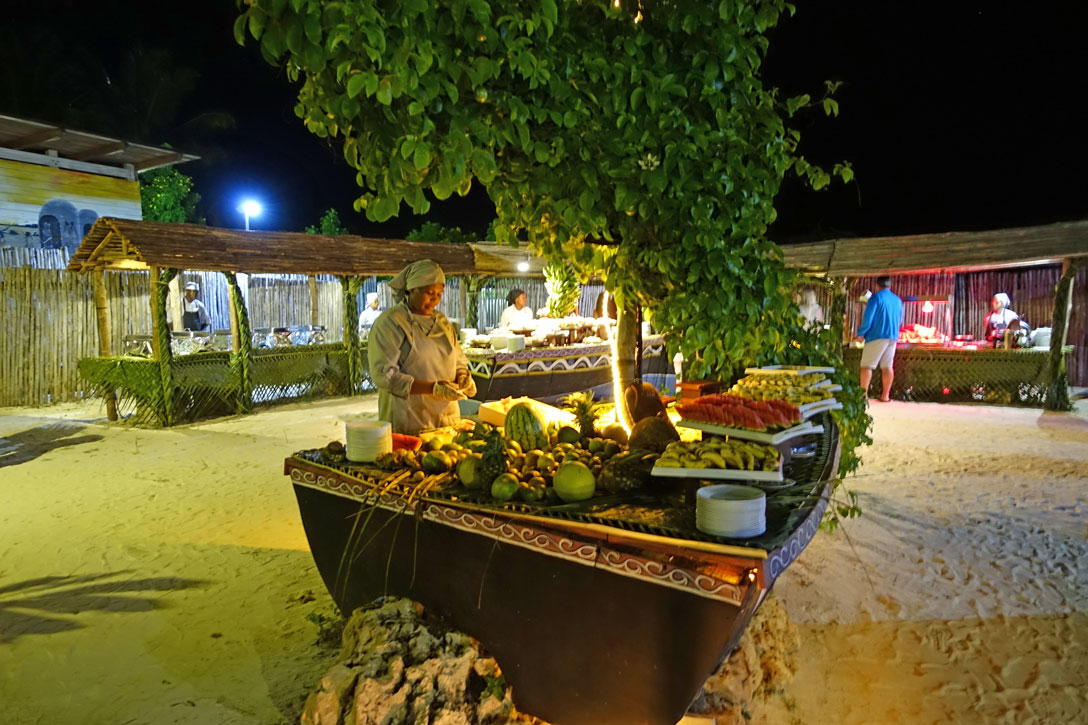 Das italienische Büffet am Abend ist nicht besonders toll, aber es gibt richtig guten Schinken und Parmesankäse.Irgendwie ist mir die Insel mit ihren Menschen ans Herz gewachsen. Ich habe inzwischen einen aktiven Wortschatz von 64 Ausdrücken in Kiswahili gelernt und die Kellnerinnen und Kellner freuen sich und lächeln, wenn ich mich von ihnen am Abend verabschiede und "usiku uwa mahaba" sage. Das heißt "Ich wünsche Ihnen eine romantische Nacht." Natürlich lernt man dann im Gespräch mit ihnen auch die Unterschiede zu einer "kimapenzi usiku" und einer "usiku kusisimua", also einer erregenden sexuellen und einer aufregenden Nacht. Wenn ich etwas nicht weiß, gebe ich es in den Google-Übersetzer für Suaheli ein und bekomme die Antwort. Wir lachen uns dann alle zusammen über die englische Übersetzung kaputt, denn die deutsche verstehen sie ja nicht.