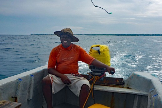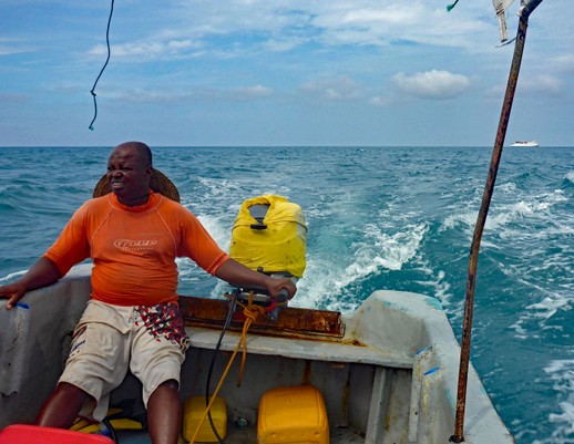 Missmutig steuert Haji das Boot über das Meer. Er erklärt mir, wie viel Geld doch 10 Dollar für ihn sind, wo allein der Sprit schon 5 Dollar kostet, den er für die Tour mit mir verfährt. Ich sage ihm, dass ich ihn vollkommen verstehe, aber wenn er die Vermittler einsparen wolle, müsse er selbst mit den Touristen reden.