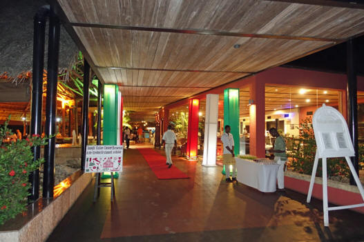 Am Abend wird vom Hotel ein afrikanisches Büffet im African Village veranstaltet - das ist ein Bereich innerhalb der Hotelanlage, der speziell für solche Zwecke mit einer Show-Bühne und Zuschauerbänken ausgestattet wurde.