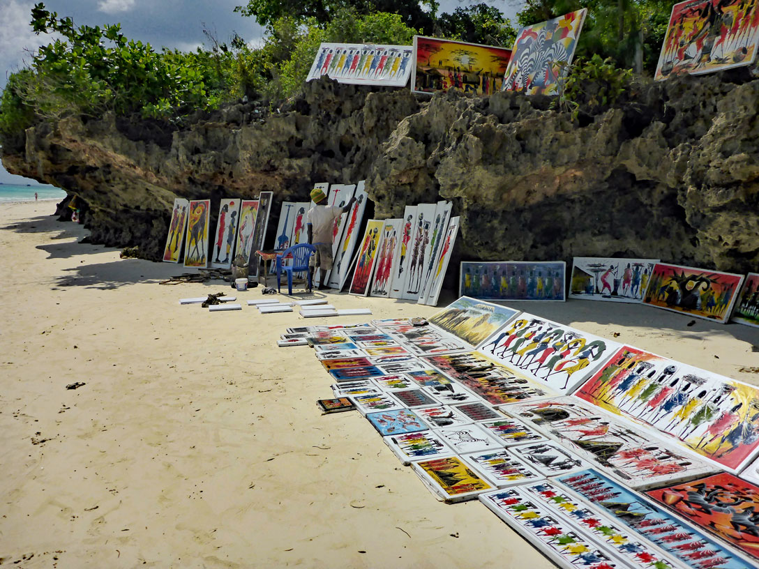 Gegen Mittag sind wir wieder zurück am Hotel. Der Himmel ist bedeckt und es weht ein leichter Wind. Viele neue Gäste sind angekommen. Jetzt ist Ebbe und die Händler bevölkern den Strand. Ich erfahre von Coco, unserem einheimischen Animateur, dass "Papasis" in der wörtlichen Übersetzung "Zecken" bedeutet und dass damit die illegalen Händler und Vermittler, aber auch die Beachboys gemeint sind. "Schlepper, Nepper, Bauernfänger" würde man bei uns sagen.