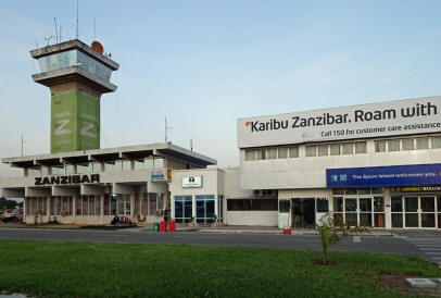 Unser erster Gang führt zum Visum-Schalter, wo wir erst einmal für jeden 50 Dollar berappen müssen. Wir sind erstaunt, dass so viele Leute hier ausgestiegen sind - der ganze Raum vor den beiden Einreiseschaltern steht voll. Da wir ziemlich vorn in der Schlange stehen, sind wir relativ schnell fertig und müssen unsere Fingerabdrücke und ein elektronisches Foto hinterlassen, bevor wir uns der Gepäckausgabe zuwenden können. Das Terminal vom Flughafen Sansibar. Jetzt begreifen wir, dass der Name der Insel mit "Z" geschrieben wird, das wie ein weiches "S" ausgesprochen wird. Ein Gepäckband gibt es nicht, sondern die Koffer werden einzeln auf die Rampe gestellt und jeder holt sich seinen, wenn der zu sehen ist. Das ist ziemlich chaotisch. Glücklicherweise sind unsere beiden schnell da und hinter uns winkt uns schon heftig ein kopftuchverhangenes schwarzes Gesicht hinter dem Wechselstubenschalter heran. Auf die Devisen scheint man scharf zu sein - wir spazieren hin und bekommen für 100 Euro 220 000 Tansania Schillinge. Der Kurs von 1:2200 ist aber in Ordnung, denn im Internet wird uns derselbe Betrag angegeben. Wir lernen unsere ersten Wörter auf Kiswahili: "Asante sana" (= Vielen Dank).