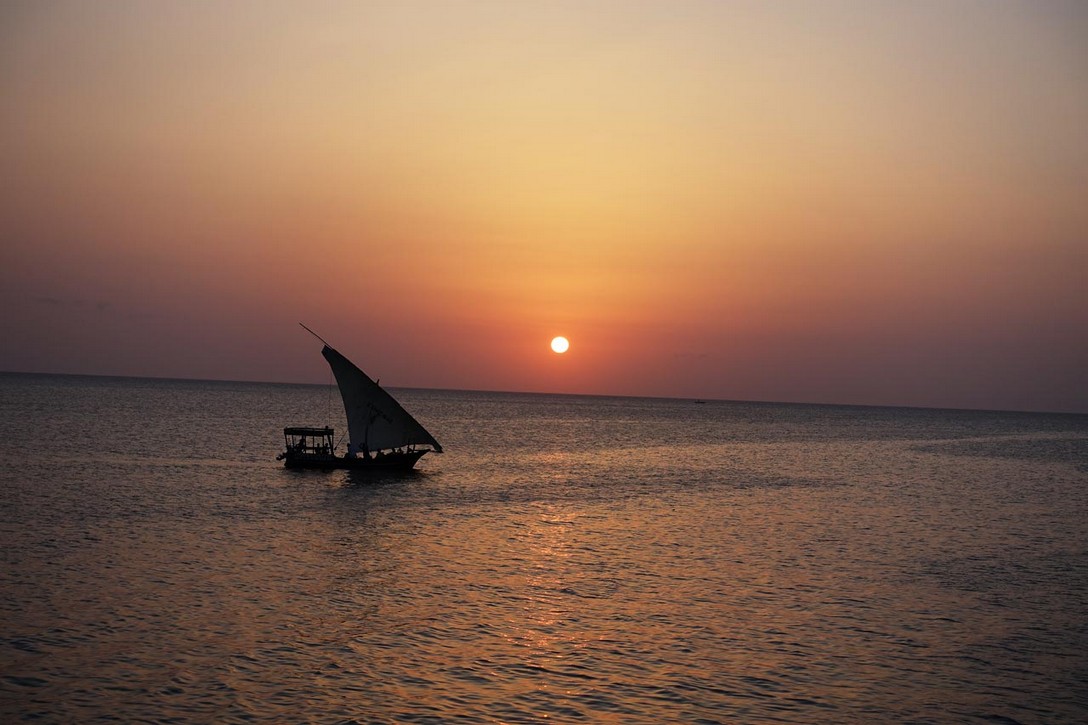 Letzter Tag im afrikanischen Paradies. Nach einem heißen Tag gibt es zur Happy Hour keinen schönen Sonnenuntergang mehr, sondern nur noch lärmende Touristen auf den vorbeifahrenden Dhaus. Wir verabschieden uns von der Kellnerin Florence mit 5 $ Extratrinkgeld und sie ist happy.