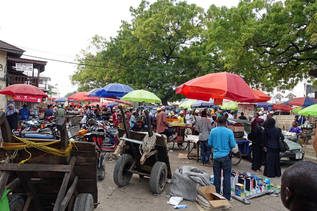 Beim Gang über den Markt und die anliegenden Straßen stellen wir fest, dass das Angebot ziemlich begrenzt ist und sich auf den täglichen Bedarf der Sansibaris bezieht. Viele Händler breiten einfach ihre Waren auf der Straße aus oder stehen vor ihrem Karren, mit dem sie ihr Verkaufsangebot mitgebracht haben. Oft ist das auch nur ein Fahrrad.
