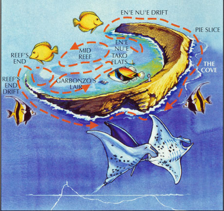 Wenn Sie etwas weiter hinaus schwimmen in Richtung auf den "Sweet Heart Rock", können Sie grüne Meeresschildkröten beobachten und auch größere Fische. Unter Wasser befinden sich zwischen den Lavabrocken auch kleinere Höhlen, in denen sich viele bunte Riff-Fische aufhalten.