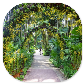 Der Botanische Garten in Singapur ist von morgens 5 Uhr bis Mitternacht geöffnet und wird deshalb vielfach von den Einwohnern Singapurs als Joggingstrecke oder zum Spazierengehen genutzt. Er ist nicht umsonst einer der meist besuchten botanischen Gärten der Welt, denn die Fülle der tropischen Bäume, Pflanzen und Blumen ist überwältigend. Hier ein paar Eindrücke von unserem Besuch: