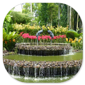 Mit dem ausgezeichneten Frühstücksbuffet im Conrad Centennial sind wir hoch zufrieden. Anschließend fahren wir mit dem Hippo - Bus zum Botanischen Garten. Die Hitze, die hier in Singapur das ganze Jahr über herrscht, bekommen wir heute richtig zu spüren. Es weht kein Wind, aber wir wollen doch unbedingt den berühmten Orchideen-Garten und auch den Ingwer-Garten wiedersehen, der uns beim letzten Besuch vor 8 Jahren so gut gefallen hat.