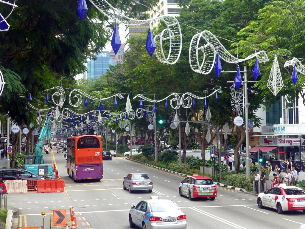 An der Orchard Road als der größten Shopping-Mall dieser Welt hat sich in den letzten Jahren nicht viel verändert, sie wird nur immer größer und man wundert sich, was und wie viel die Menschen doch kaufen. Es ist richtig viel los. Vor allem hochpreisige Waren werden gekauft. Ich mache einen Kauftest und versuche die neue Lumix TZ 41 zu bekommen. Aber sie ist noch in keinem der Elektronikläden vorhanden und der Preis wird mit umgerechnet 298 Euro angegeben. Aber als ich ins Internet schaue, sehe ich sie schon in Deutschland im Mediamarkt und bei Saturn für 268 Euro. Der Vorteil des Internets liegt halt darin, dass man heute weltweit in jedem Laden mit seinem Smartphone den Preis von zu Hause feststellen und vergleichen kann. Also kann man hier mit Elektronik keine Geschäfte machen. Und die Vorbereitungen auf das Weihnachtsfest sind auch hier in vollem Gange. Goldene Engel, Weihnachtsbäume und blitzende Kugeln sollen bei 32°C im Schatten das Geschäft ankurbeln.