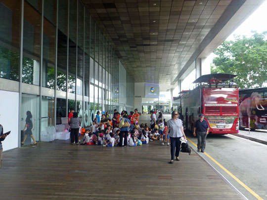 Vor der Haltestelle warten natürlich auch viele Schulkinder, die einen Ausflug machen. Selbst die Kleinsten haben Spaß an einer Fahrt mit dem Amphibienfahrzeug Wacky Duck, das für 33 S$ (bzw. 23 S$ für Kinder) nicht nur durch die Straßen, sondern auch durch die Marina Bay fährt.