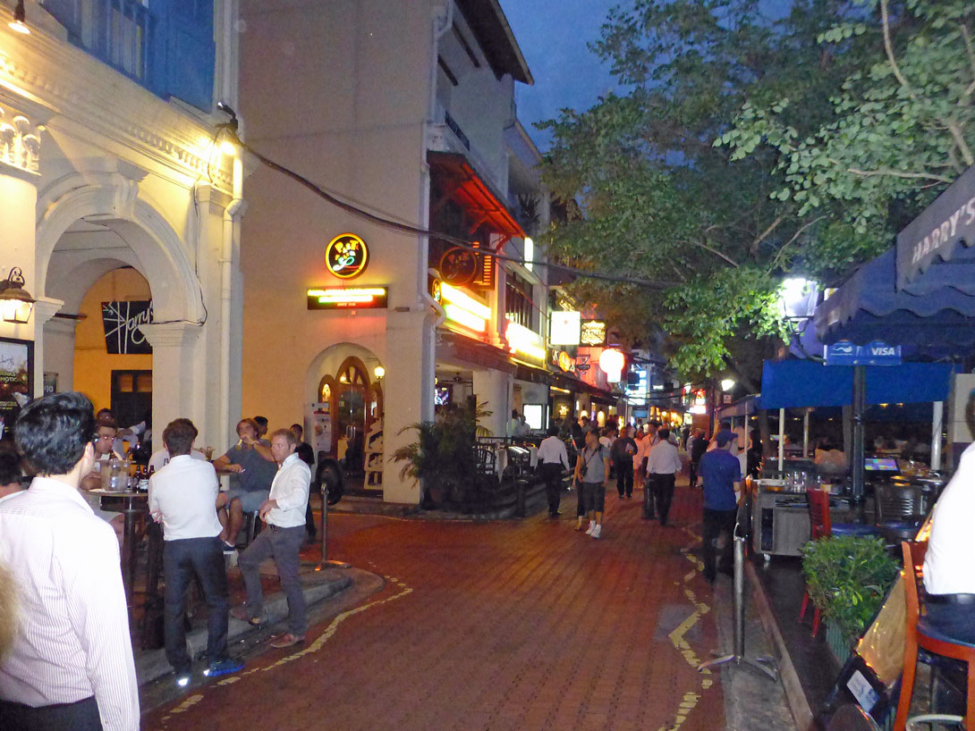 Viele Geschäftsleute treffen sich zur Happy Hour in den Bars am Boat Quay. Die unzähligen Restaurants auf dieser tropischen Fressmeile bieten Spezialitäten aus allen Küchen dieser Welt an. Man kann sehr deutlich die Geschäftsleute von den Touristen unterscheiden.