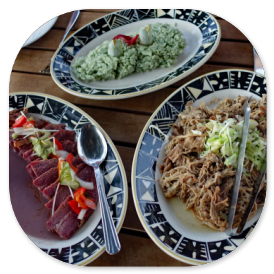 Für die alten Hawaiianer war ein Luau ein Gemeinschaftsfest mit Familie, Kindern, Verwandten und Freunden, bei dem man zusammen essen, tanzen und Spaß haben sollte. So ist das bis heute geblieben - wird aber in moderner - und mehr oder weniger touristischen - Form bei allen Veranstaltungen zelebriert. Ob Ihnen die Speisen gefallen, ist Geschmackssache. Gemäß der alten Tradition sind immer folgende Spezialitäten dabei: