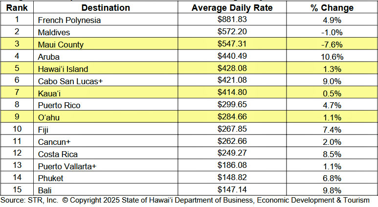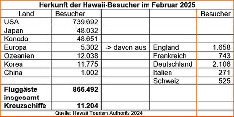 Das hat man inzwischen auch in Hawaii erkannt, wie eine Zusammenstellung des hawaiianischen Tourismusbüros vom Februar 2025 zeigt: