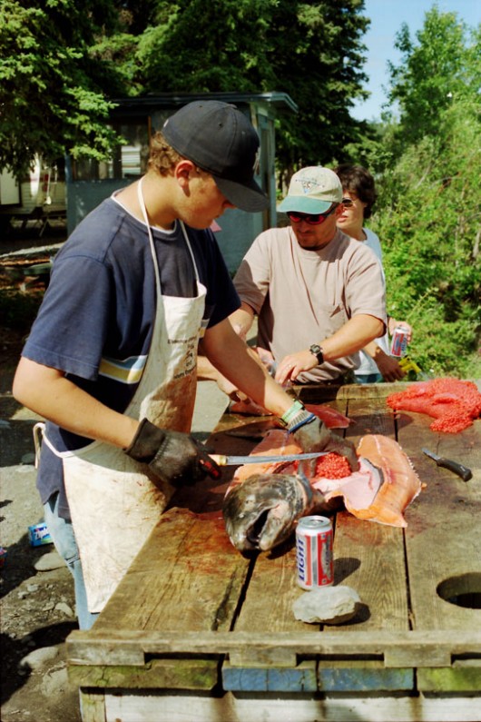 Rotlachse werden am Klutina River gefangen und sofort zerlegt.