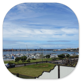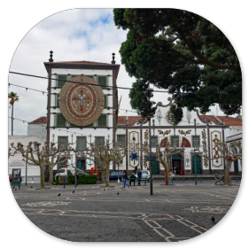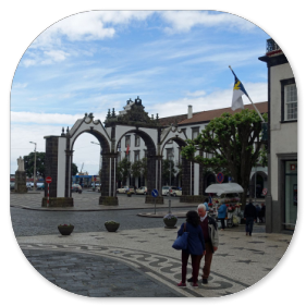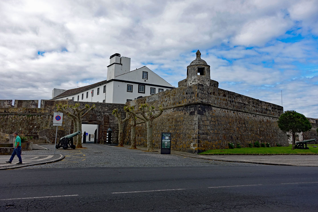 Wir sind froh, dass Reiseführer Hugo die Abfahrtszeit auf 9:00 Uhr festgelegt hat. Im Bus erklärt er uns den Stadtrundgang, den er am heutigen Vormittag mit uns machen will. Dazu steigen wir am Campo Sebastião aus, wo das Auswandererdenkmal steht. Unsere Gruppe besteht aus 39 Leuten und ist vom Alter her gemischt.Hugo schildert die Geschichte der Insel und der Stadt, die Anfang des 16. Jahrhunderts nur eine kleine Fischersiedlung war. Hauptstadt wurde sie erst, als Vila Franca do Campo durch ein Erdbeben 1522 zerstört wurde. Das Fort, das danach gebaut wurde, zog viele Bauern in dessen Umgebung und man lebte vom Fischfang, von der Landwirtschaft und vom Handel. Die Insel war lange Zeit Versorgungsstation für die Schiffe, die von Portugal nach Südamerika fuhren. Eingeschleppte Seuchen und Naturkatastrophen führten aber zum Niedergang der Insel,