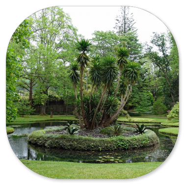Es ist ein kunstvoll gestalteter Park mit vielen blühenden Blumen, exotischen Bäumen und vielen Picknickplätzen.