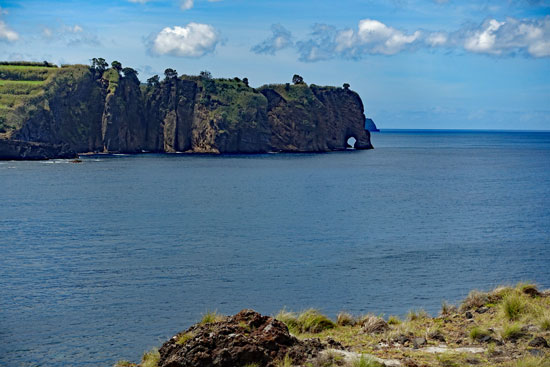 Unseren ersten Halt machen wir in Vila Franco do Campo, der alten Hauptstadt von São Miguel. Der Himmel hat sich inzwischen etwas aufgelockert und das Wetter ist ganz schön an diesem Sonntagmorgen.