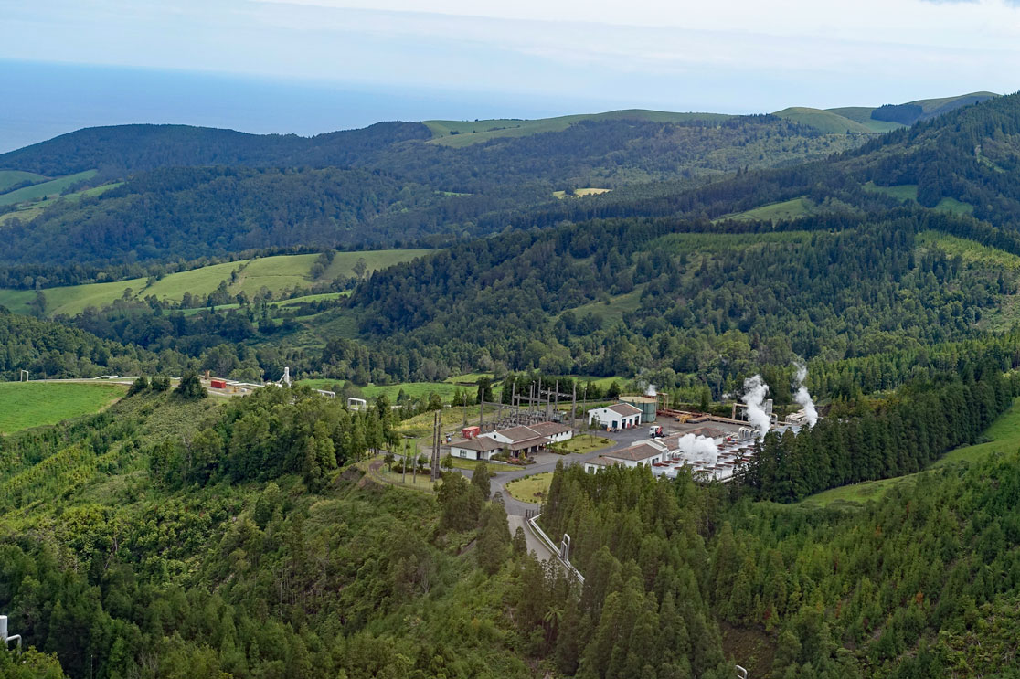 Schließlich gibt es genug Vulkanismus auf den Inseln und man fand bereits in einer Tiefe von 500 Metern Temperaturen von 200°C. Daher lohnen sich die Bohrungen und inzwischen deckt São Miguel mehr als 40% des Energiebedarfs durch geothermische Kraftwerke ab.