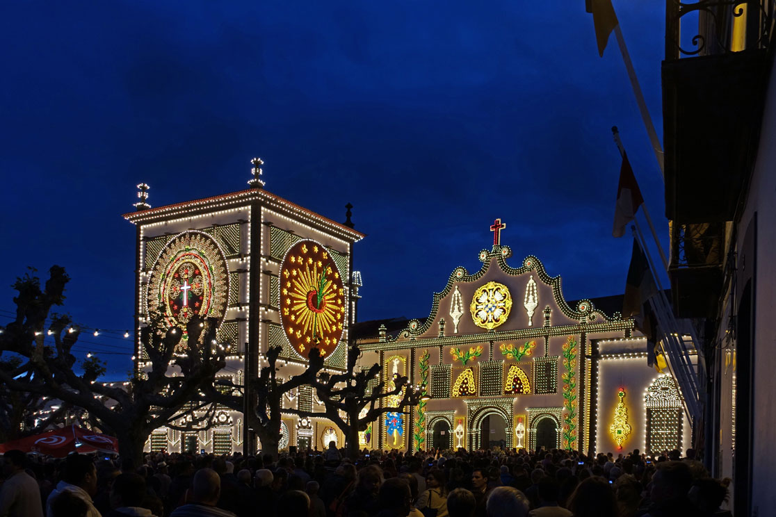 Um 9:10 Uhr fahren wir ab, aber nicht nach Sete Cidades, wie es im Programm steht, sondern Hugo erklärt uns, dass er die Tagesprogramme verschoben hat, weil er in den Wetterbericht geschaut hat und dass er gern für uns die Möglichkeit schaffen will, heute Nachmittag gegen 16:00 Uhr zurück zu sein, damit wir am Abend das Einschalten der Lichter zur Festa do Senhor Santo Christo dos Milagres miterleben können und danach am Sonntagnachmittag die Prozession durch die Stadt besuchen können. Damit sind wir natürlich sehr einverstanden, zumal er davon schwärmt, das sei das größte Fest auf den Azoren und wir sollten das unbedingt miterleben.