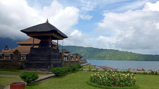 Kerji zieht hier oben in den Bergen seine Jacke an, weil es ihn fröstelt. Wir finden die 20°C wunderbar erfrischend. Als wir am Bratan - See ankommen, warten dort schon viele Schulklassen und Pilgergruppen am Eingang. Uns erscheint die Tempelanlage wie ein großer Kinderbelustigungspark. Es sind nämlich Kinderspielplätze hier, man kann Tretboote mieten und findet große Liegeflächen am See.