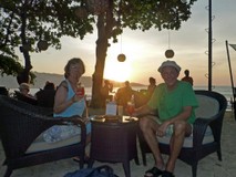 Am Abend sind an unserem Hotel keine Qualmwolken und es stinkt nicht, weil kein Wind herüberweht. Deshalb wollen wir uns in dem Restaurant Bella Cucina ein Schlemmermenü gönnen. Wir sitzen auf der Veranda bei Kerzenlicht, bekommen eine Leselampe für die Speisekarte und frisches Ciabatta mit Oliven-Pesto und Kräuterpesto. Unsere Vorspeisen (Rock Lobster Salad und Tuna Crab Salad) für 175000 Rupien (= 10 €) sind hervorragend. Als Hauptgang wählt Inge den Oven Codfish und ich nehme Saltimbocca a la Romana. Beides ist zwar auf eine ungewöhnliche italienische Art zubereitet - das Saltimbocca wie ein Filet Mignon - , aber sehr lecker. Wir sind sehr zufrieden und bezahlen für unseren Feinschmeckerabend 1 370 000 Rupien ( = 83 €). Wir hätten natürlich gern einen guten Wein dazu getrunken, aber die Preise sind einfach unverschämt. So Haben wir uns einfach mit einigen kühlen Gläsern Bintang Bier begnügt.