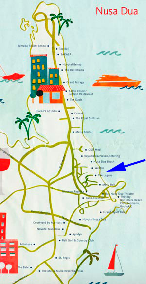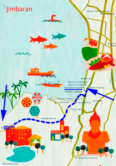 Auf der Karte kann man erkennen, dass es vom Ayana Resort zum Intercontinental nicht sehr weit ist.