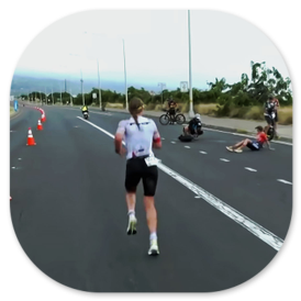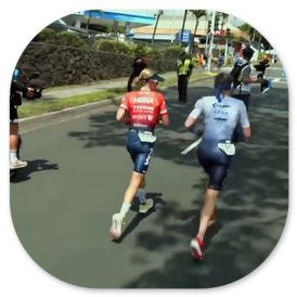 Taylor Knibb startete als erste in den Marathon und Lucy Charles-Barclay war knapp hinter ihr. Beide hatten einen großen Vorsprung. Fast 6 Minuten später traf die Norwegerin Solveigh Lovseth ein, die mit der Startnummer 16 zum ersten Mal in Hawaii dabei war und erstaunlich schnell das Radfahren beendet hatte. Laura Philipp lag zu diesem Zeitpunkt 14 Minuten zurück und wir rechneten nicht mehr damit, dass sie einen Podiumsplatz erringen könnte. Sie hielt sich weiter an Kat Matthews, mit der sie das Radfahren gemeinsam beendet hatte und die als starke Marathonläuferin galt. Leider konnte Laura deren Tempo nicht mithalten und ließ Kat Matthews ziehen. Von da an erwarteten wir keinen Platz mehr für sie unter den Top Ten, weil der Abstand zu der führenden Lucy Charles-Barclay und Taylor Knibb zu groß war. Die liefen zunächst nebeneinander, überholten sich gegenseitig, bis sich Taylor Knibb absetzte und unangefochten an der Spitze lag. 20 km vor dem Ziel erlitt Lucy einen Schwächeanfall und musste aufgeben. Das schockierte alle.