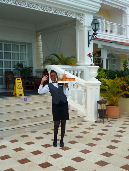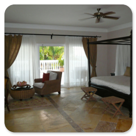 Spätestens bei der Ankunft mit Erfrischungstüchern, dominikanischen Folkloretänzen und livrierten Gepäckträgern mit Tropenhelmen wird deutlich, dass das einzige Hotel dieser Insel seinen 5-Sterne-Status betont. Das kann man auch ohne Einschränkungen bestätigen, wenn man die Zimmer betritt, die mit den beigefarbenen Marmorfußböden einen angenehm kühlen Eindruck vermitteln.