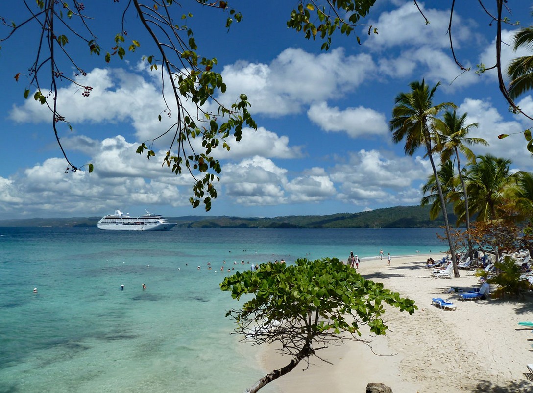 Die Insel hat drei schöne Strände, von denen der links im Bild zu sehende weiße Sandstrand der so genannte "Bacardi-Strand" ist. Das ist der öffentliche Teil, der allgemein zugänglich ist. Er wird so genannt, weil man das Gerücht verbreitet hat, die Rum-Firma Bacardi hätte hier ihre Werbefotos vom Traumstrand der Karibik gemacht. Deshalb werden überall in der Dominikanischen Republik Ausflüge auf diesen Strand angeboten und die Kreuzfahrtschiffe ankern 300m davor in der Bucht von Samaná.