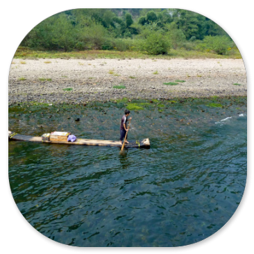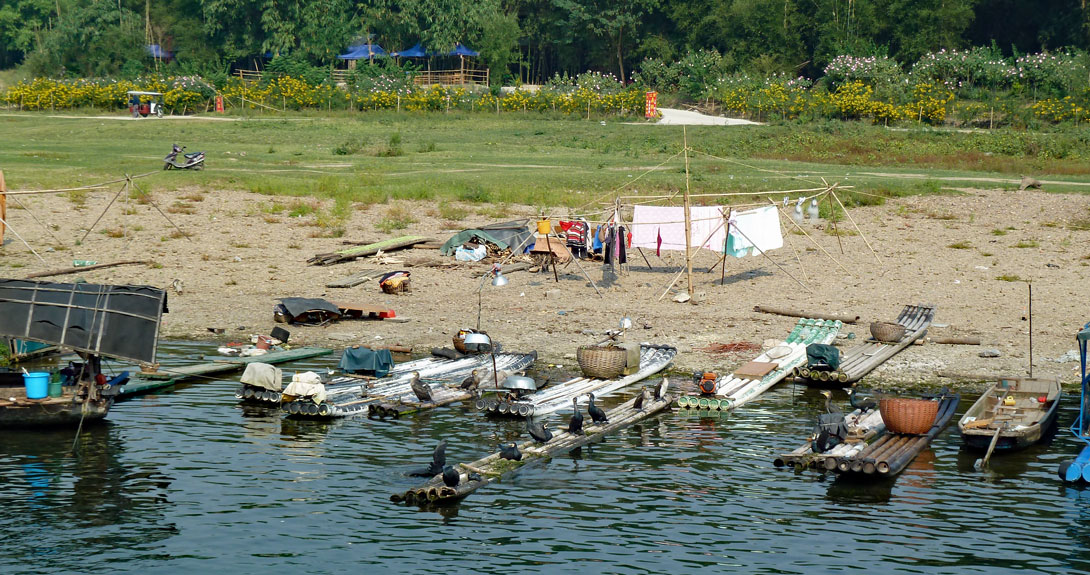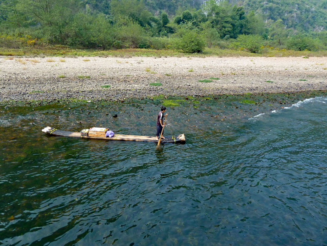 Wir müssen nur immer lachen, wenn ein anderes Boot vorbei kommt und die Chinesen uns durch ihr Winken zum Lachen auffordern. Die Boote sehen zwar nicht gerade so aus wie die Gondeln in Venedig, aber die Chinesen stellen sich das halt so vor. Und wir lachen natürlich auch.
