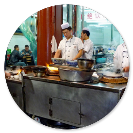 Das Rezept der Pekingente, die zu den berühmtesten Genüssen der chinesischen Küche gehört, stammt aus der Zeit der Ming-Kaiser. Dazu werden Enten mit einem besonderen Futter in einem dreiwöchigen Schnellkurs gemästet (wie bei den Franzosen die Gänse), aber gleichzeitig sportlich in Bewegung gehalten, damit ihr Fleisch zart bleibt und die Haut dünn. Die Haut ist im Übrigen das Wichtigste für die Chinesen, deshalb werden die Enten nach dem Schlachten nur gerupft, aber nicht ausgenommen. Man schneidet sie am Hals auf und bläst sie anschließend wie einen Luftballon auf, damit sich die Haut vom Fleisch ablöst. Danach werden die Innereien durch einen möglichst kleinen Schnitt unter dem Flügel entfernt und die Ente wird mit kochendem Wasser übergossen, gewürzt und anschließend mit heißem Honig eingepinselt. Anschließend wird die Ente einige Stunden am Hals aufgehängt und getrocknet. Erst danach wird sie hängend in einem Spezialofen gegart, wobei die Haut sich dann aufbläht, schön knusprig und rotbraun wird. Dann kommt der Koch mit einem Wagen und zelebriert das Zerschneiden der Pekingente.