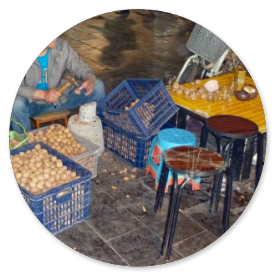 Zum Schluss macht zur Verdauung das Kännchen mit dem 58%igen Reisschnaps seine Runde, den wir ja inzwischen kennen und der uns immer besser gefällt. Mehr als ein Kännchen ist aber leider nicht drin, denn Liu kommt und sagt, der Bus stehe draußen und wir müssten einsteigen.