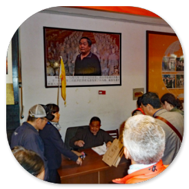 Hutong ist ein mongolisches Wort und bezeichnet eine Gasse. Vor einigen Jahren gab es in Peking noch sehr viele solcher Gassen, aber die wurden alle abgerissen und durch neue Häuser ersetzt. Auch das Altstadtviertel, durch das wir jetzt mit einer Rikscha fahren, wird in zwei Jahren abgerissen, erklärt uns Liu. Aber jetzt sieht es in der Tat noch so aus, als fühlte man sich in das alte China versetzt Die Gassen sind in der Tat sehr eng und vollgestellt mit Fahrrädern, Rollern, Karren und Autos, die irgendwo etwas abladen oder aufladen. Natürlich sind auch wieder versteckte Hauseingänge, seltsam riechende Garküchen, exotische Verkaufsstände und abenteuerlich verlegte Elektroleitungen zu beobachten.Das kannten wir ja schon von vielen Chinatowns überall auf der Welt. Aber jetzt finden wir auf den Leitungen die aufgehängte Wäsche zum Trocknen, das ist neu für uns.