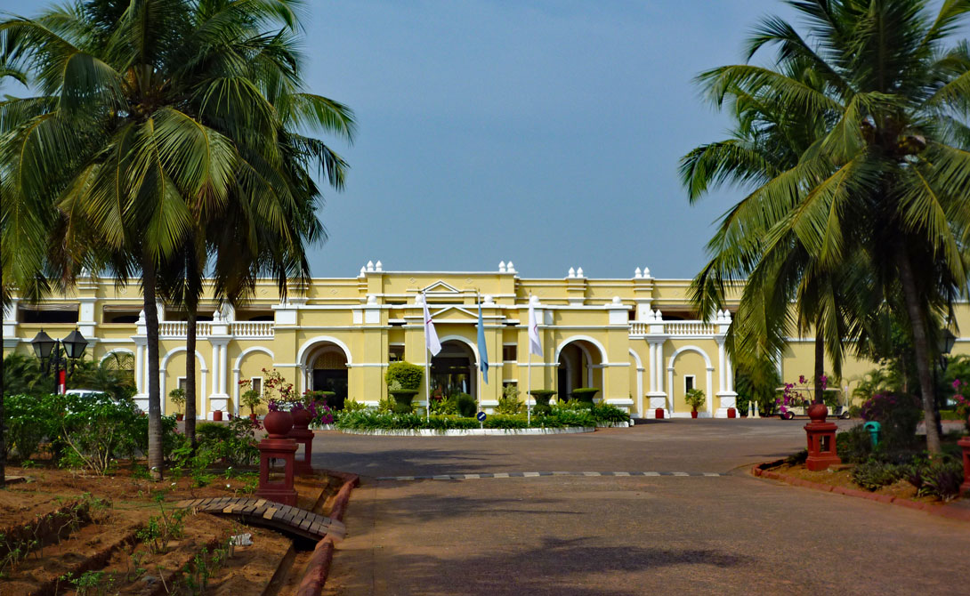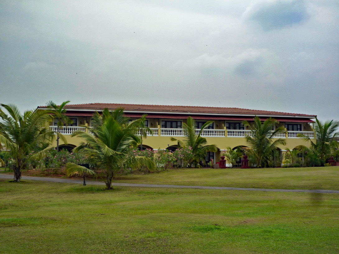 Ganz im Süden des Bundesstaates Goa befindet sich der Bezirk Canacona und das Hotel Lalit Interconti liegt total abgeschieden 2km hinter dem Dorf Canacona inmitten eines 18 ha großen Gartens mit Golfplatz. Vom Meer sieht man allerdings wegen der Palmen und Bäume nicht viel.