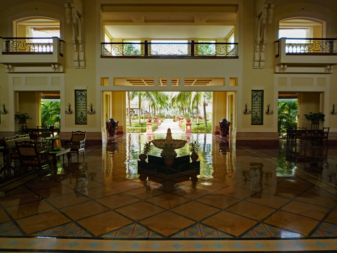 Das 5-Sterne-Hotel ist menschenleer. Es sind weniger als 40 Gäste hier, obwohl das Hotel 290 Zimmer hat. Verwundert befragen wir deshalb den Hotelmanager, der uns antwortet, dass es ein typisches Tagungshotel sei, das von großen Firmen gebucht werde, die dann mit 500 Gästen kämen. Übermorgen würde zum Beispiel eine indische Hochzeit stattfinden, zu der 150 Gäste erwartet würden.