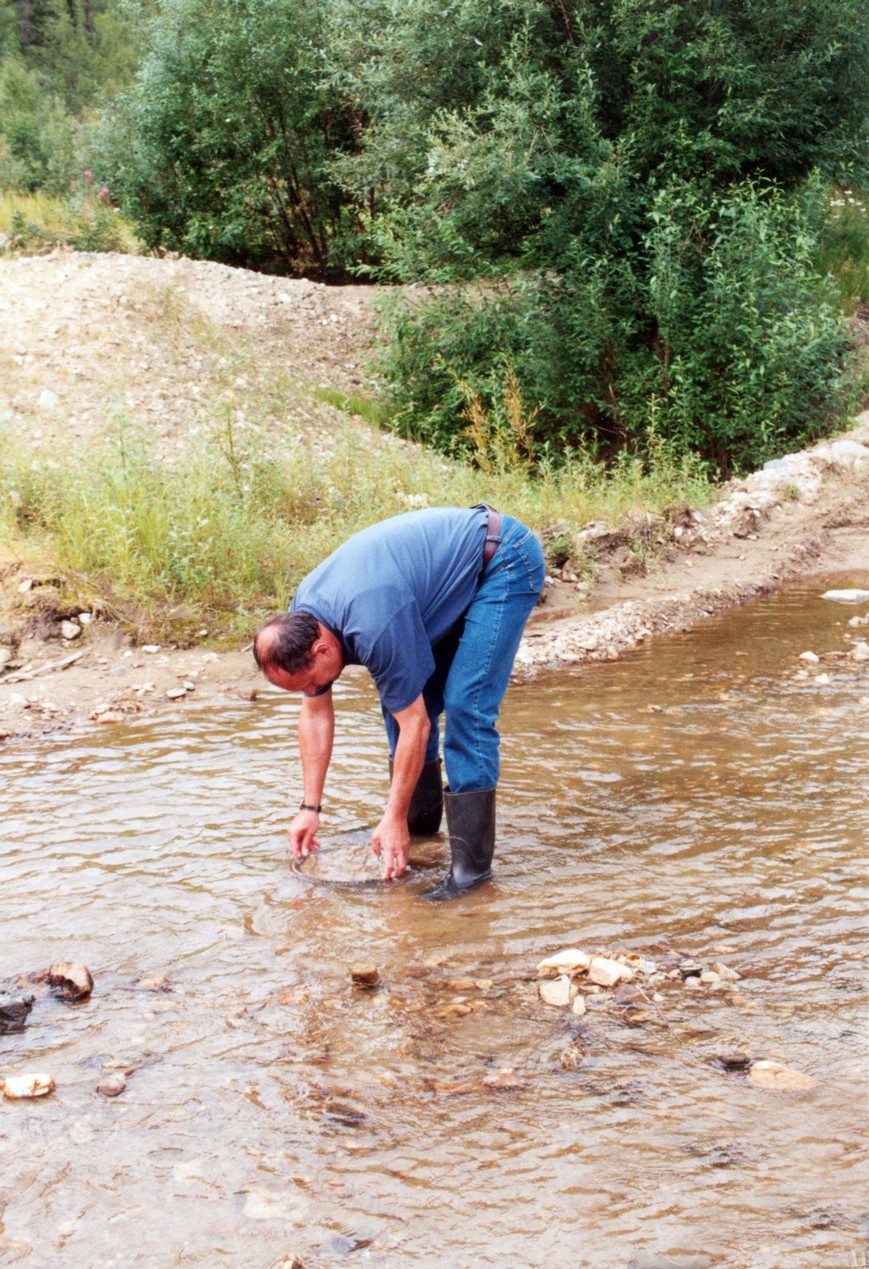 Wenn Sie das alles richtig begriffen haben, hält Sie nichts mehr. Also Abmarsch zum Goldbottom Creek! Als erfahrener Goldwäscher nehmen Sie natürlich auch einen Spaten, eine Schaufel und Ihr Schweizer Taschenmesser mit. Am Crow Creek in Alaska habe ich übrigens gesehen, dass die Profis auch noch viele Wollsocken, viele Dosen Bier, einen Whiskybecher mit zugehöriger Flasche, eine Lupe und einen Hammer mitnehmen...