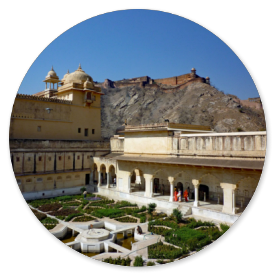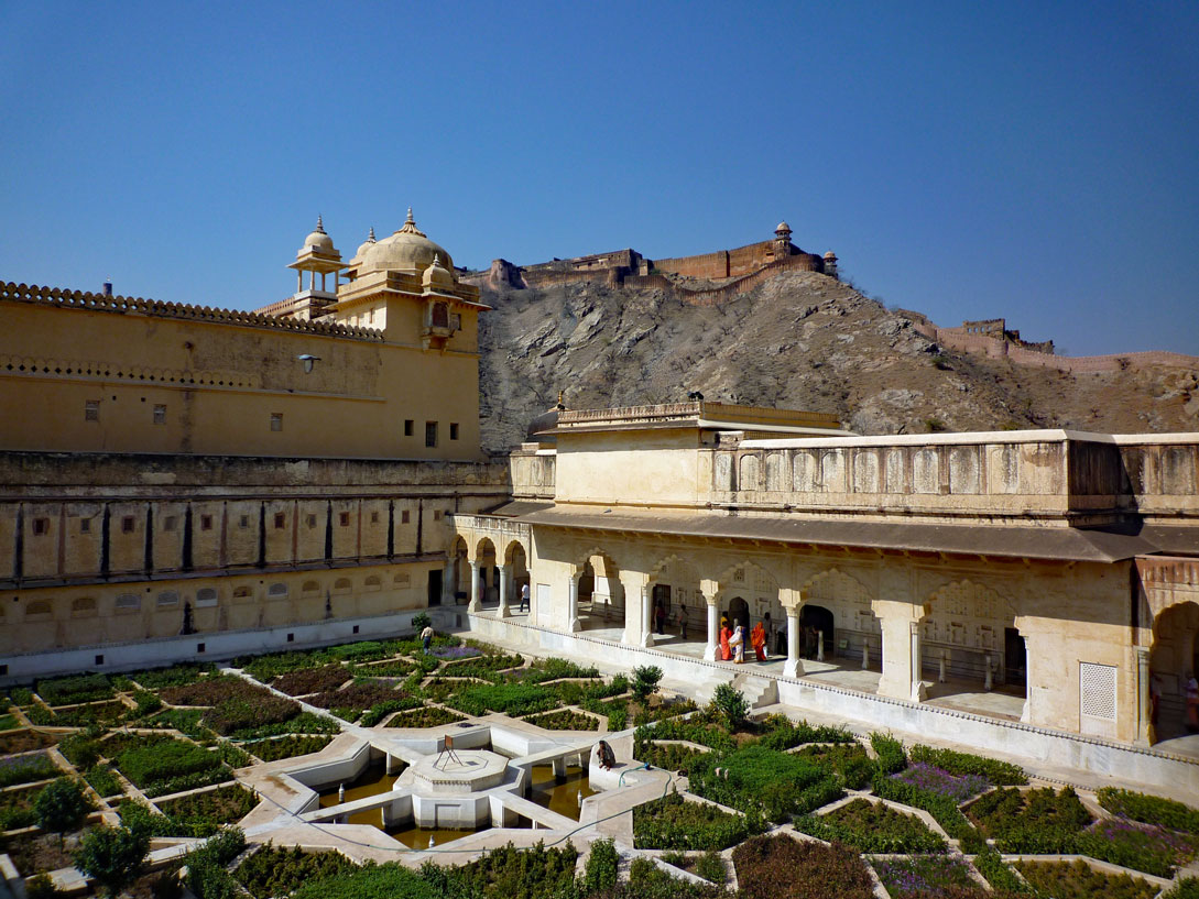 Zum Schluss spazieren wir noch eine halbe Stunde durch den 18ha großen Blumengarten und sind immer wieder fasziniert vom Anblick des Mausoleums. Mit Recht ist damit der Höhepunkt unserer Rajasthan-Rundreise erreicht.