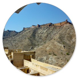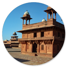 ganz früh an der Festung Fatehpur Sikri vorbei, einem alten Palast