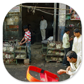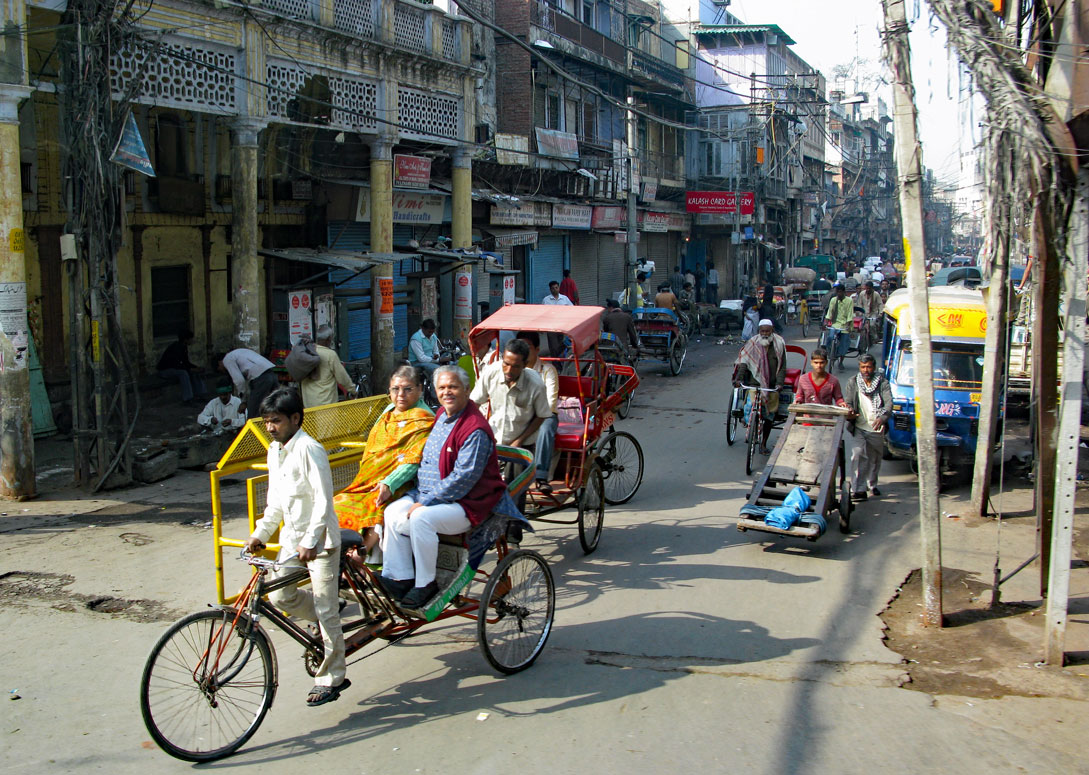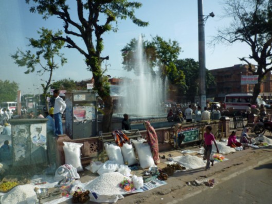 Mit 2 Bussen und zwei Reiseleitern, die ganz gut deutsch sprechen, ist heute zunächst eine Stadtrundfahrt vorgesehen. Im Gegensatz zu unserem ersten Alleingang gestaltet sich die Stadtbesichtigung mit einem Deutsch sprechenden Führer doch etwas einfacher. Um 8:30 Uhr steht nämlich unserer Reiseleiter Acay Singh vor der Tür und auf geht es mit 14 anderen zur Stadtrundfahrt. Unser Ziel ist die Freitagsmoschee in der Altstadt. Die Fahrt durch die schmutzigen Gassen mit den bunten Verkaufsständen ergibt natürlich eine malerische Kulisse. Alles ist viel interessanter und stinkt bei weitem nicht so wie in Thailand. Aber dafür begegnet uns hier viel größere Armut und alles ist viel schmutziger und voller Müll. Wir fotografieren aus dem Bus heraus und möchten am liebsten aussteigen und durch die Gassen laufen. Hier einige unserer Beobachtungen: