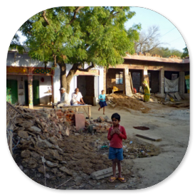 Alles sieht sehr erbärmlich aus. Auf der Fahrt durch die Straßen Delhis begegnen wir immer wieder Frauen beim Straßenbau. Nicht nur, dass neben den Straßen überall Schuttplätze und Müllhaufen sind - nein, es sind fast alles irgendwie Baustellen. Ganz Delhi ist eine Baustelle: Überall wird irgendetwas ausgeschachtet, abgedichtet oder repariert. Dort arbeiten dann auch viele Frauen, was in unseren Augen sehr ungewöhnlich ist. Das Schlimmste aber ist, dass alles ohne Baumaschinen abläuft: Keine Betonmischmaschinen, keine Radlader, selten eine Schubkarre oder eine Rüttelmaschine. Die Frauen tragen den angemischten Beton in Körben auf dem Kopf und entleeren die Körbe in die Baugrube.