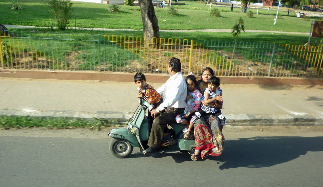 - Alle Fahrzeuge werden bis an den äußersten Rand der Belastbarkeit beladen: Auf den Fahrrädern und Rikschas sitzen 3 und vier Personen, auf den Mopeds, Rollern und Motorrädern nicht selten 4 oder 5 Personen, in den Tuktuks durchaus 10 oder 12 Personen, in den Autos, Lastwagen oder Omnibussen entsprechend noch viel mehr Leute. Man muss auch bezahlen, wenn man auf dem Omnibusdach mitfahren will. An Verkehrssicherheit denk hier niemand.
