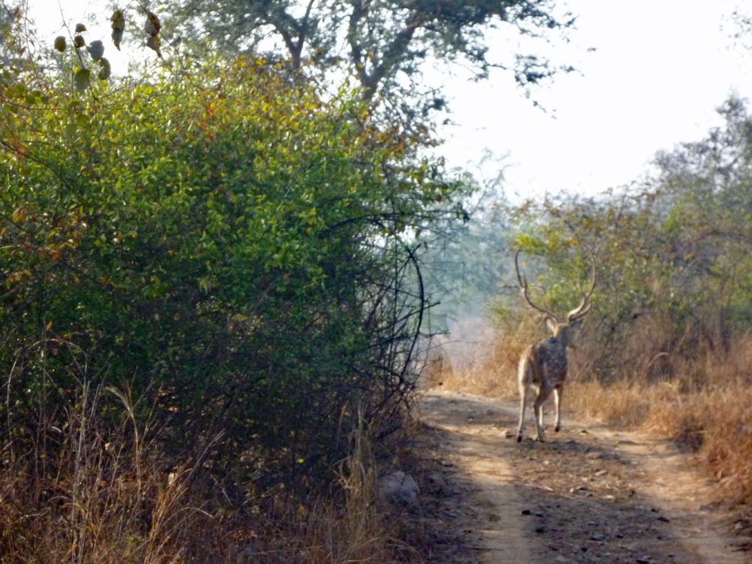 Es wird schon dunkel, als wir uns Sariska nähern; jedem entgegenkommenden Fahrzeug sehen wir mit Bangem entgegen, ob es wegen der vielen Schlaglöcher ausweichen wird oder uns zum Ausweichen zwingt. Dazwischen erscheinen plötzlich immer wieder Eselskarren, Kamelgespanne, Fahrräder und Mofas ohne Licht, die den Fahrer einen Links- oder Rechtsruck machen lassen und uns durchschütteln.