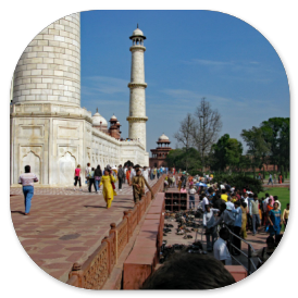 Der Höhepunkt aller Besichtigungen in Agra ist natürlich das Taj Mahal, das Mausoleum des Großmoguls Shah Jahan für seine 1631 verstorbene Ehefrau Mumtaz Mahal.