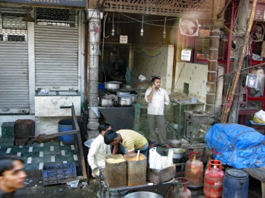 Auf der Rückfahrt nehmen wir im Laden des Bruders von Mokesh, dem Reiseleiter der anderen Gruppe, noch ein Paket Tee aus Kasmir mit, der mit verschiedenen Gewürzen gemischt ist und gut gegen Grippe sein soll.