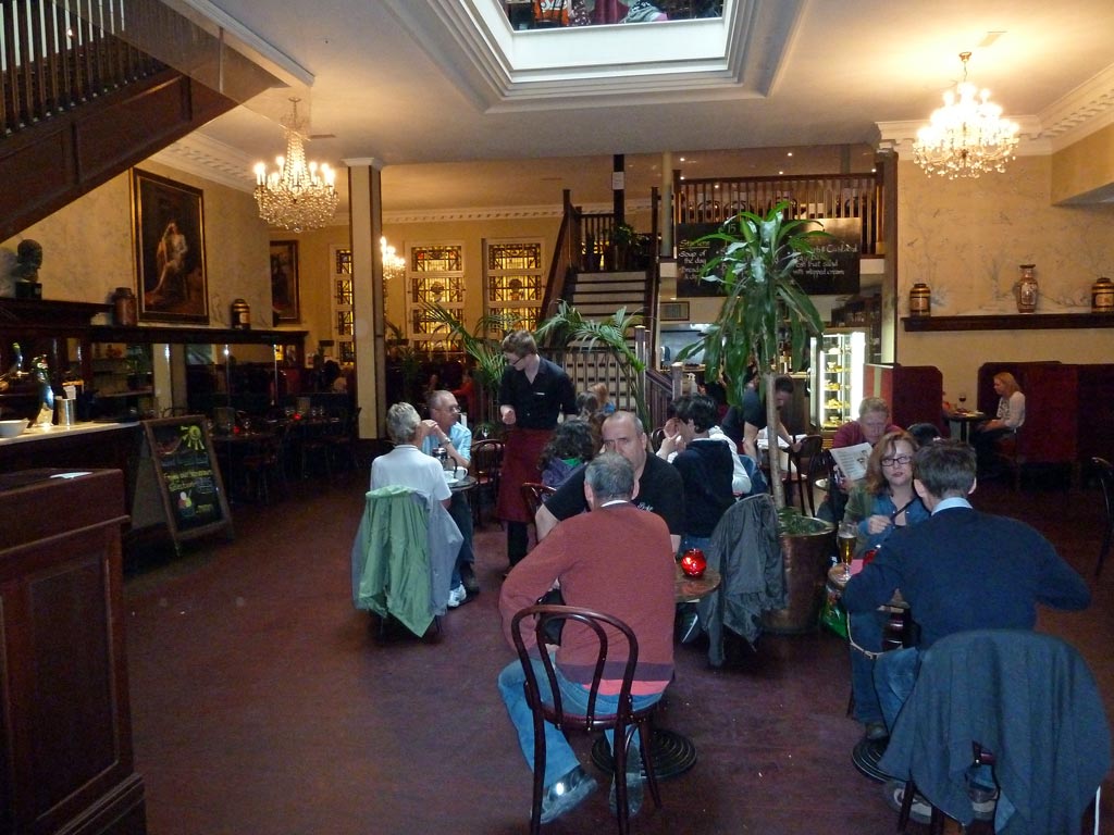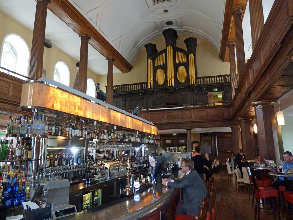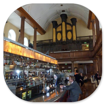 Hier gibt es Bars mit gediegener Ausstattung, wo man gemütlich einen Kaffee trinken kann. Der altehrwürdige Kamin hat sich im Laufe der Zeit auch verändert: Im oberen Teil ist jetzt ein Flachbildschirm eingebaut.
