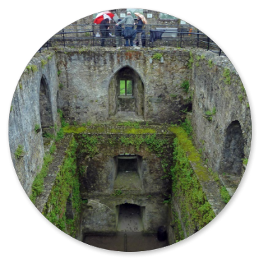 Als nächstes steht die Besichtigung der mittelalterlichen Burg Bunratty Castle auf dem Programm. Die Führung bringt uns sehr eindringlich das harte Leben der Iren im Mittelalter und die Ausbeutung durch die Earls vor Augen. Im Verhältnis zu den mittelalterlichen Burgen Deutschlands ist Bunratty ziemlich primitiv; hier stellt man wieder fest, wie arm die irischen Grafen gegenüber den deutschen in der damaligen Zeit gewesen sind.