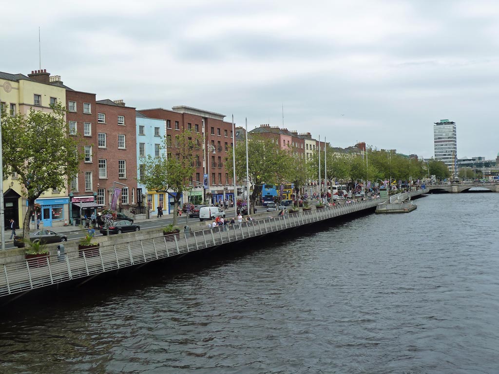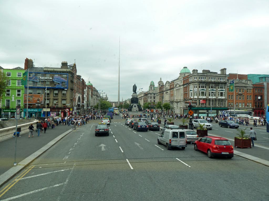 Wir bestaunen den Spire, die 120m hohe glitzernde Metallnadel, die als Wahrzeichen auf der Kreuzung steht. Man kann diese "Needle" auf dem Foto im Hintergrund sehen, das ich von der O´Connell-Bridge aus gemacht habe. Beim Spaziergang durch die Fußgängerzone fallen uns die vielen jungen Menschen auf und vor allem die vielen Mütter mit Kinderwagen. Das ist toll und das haben wir bisher noch nirgends so beobachten können. Hier ein kurzer Videoeindruck davon: